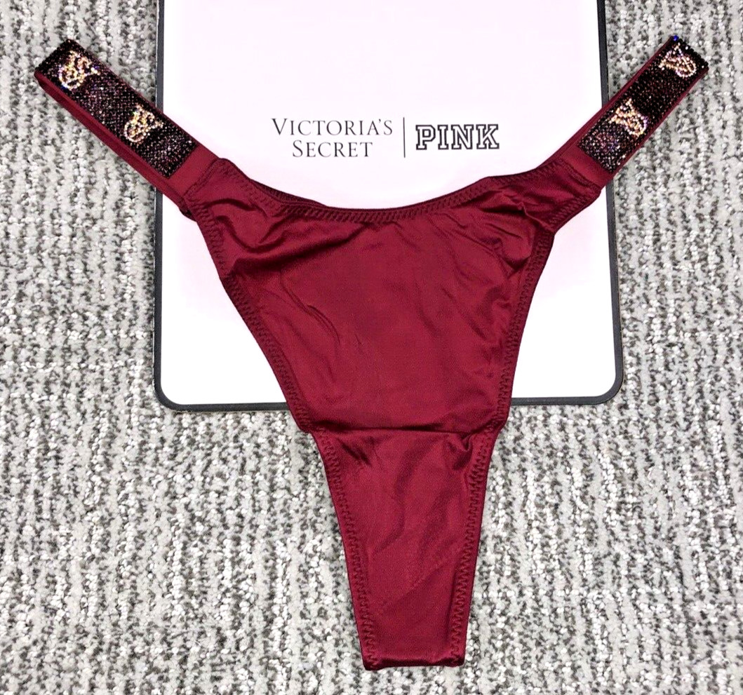 Victoria's Secret Very Sexy NWT Small Red Shine Strap Thong Panty Logo Bling
