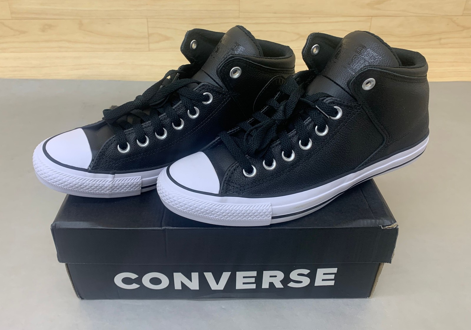 Converse Chuck Taylor High Street Black/White Mid Leather Sneaker Men8 (149426C)