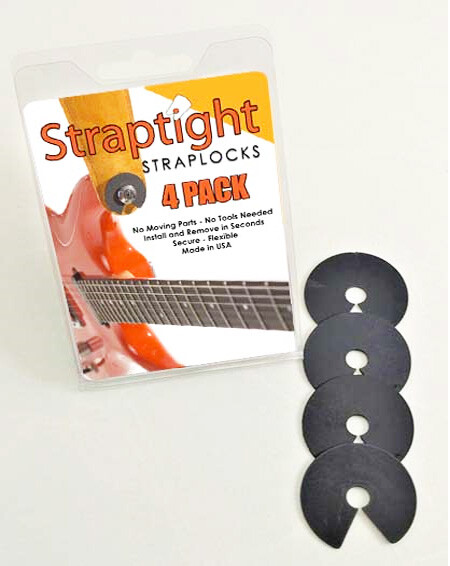 STRAPTIGHT STRAP LOCKS. No modifications to your guitar. They clip on in seconds! Don't let their size fool you, they are the real deal! Made in the USA out of a special tough grade material.