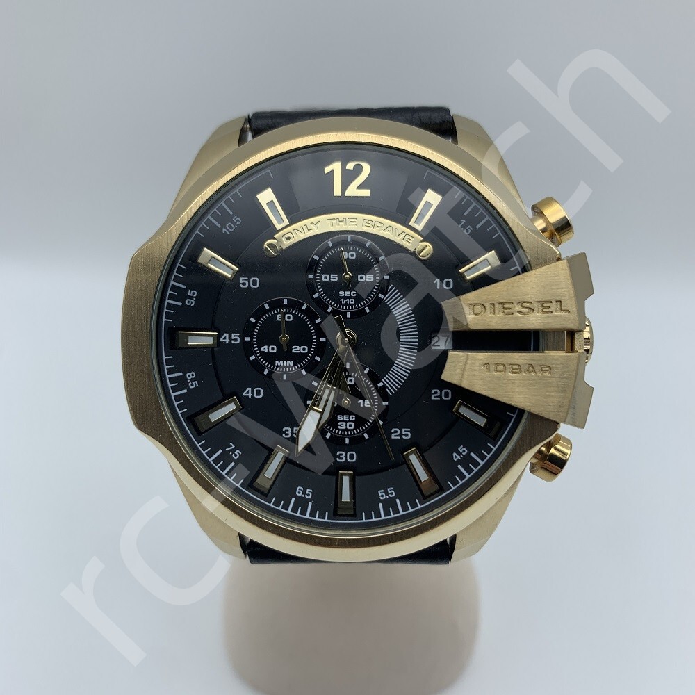 SPECIFICATIONS: Series:Mega Chief Model: DZ4344 Subclass: Watches Movement:Quartz Case Size:59 mm x 51 mm Case Material:Stainless Steel Case Color:Gold-plated Case Shape:Round Case Thickness:15 mm Dial Color:Black Bezel:Uni-directional,RotatingBezel Band Material:Leather Band Color:Black Band Clasp:Tang Features:Chronograph, Date, Hour, Minute, Second Water Resistance:100 meters / 330 feet PACKAGE : 1 x DIESEL DZ4344 (Brand New In Box).