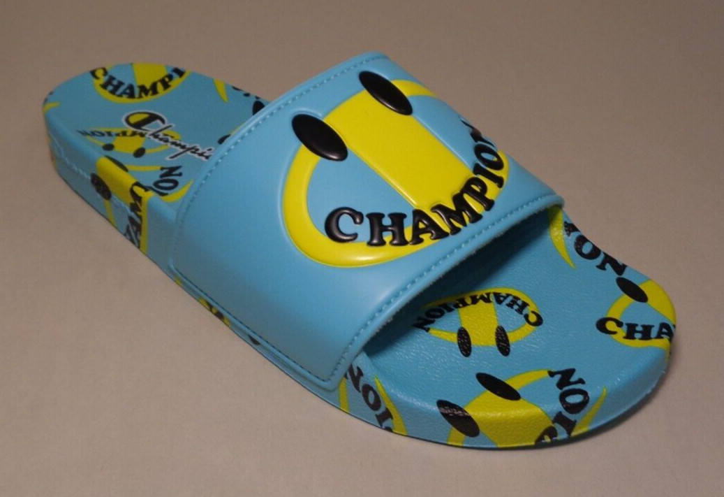 Champion Size 9 M IPO SMILE Aqua Yellow Slide Sandals New Men's Shoes