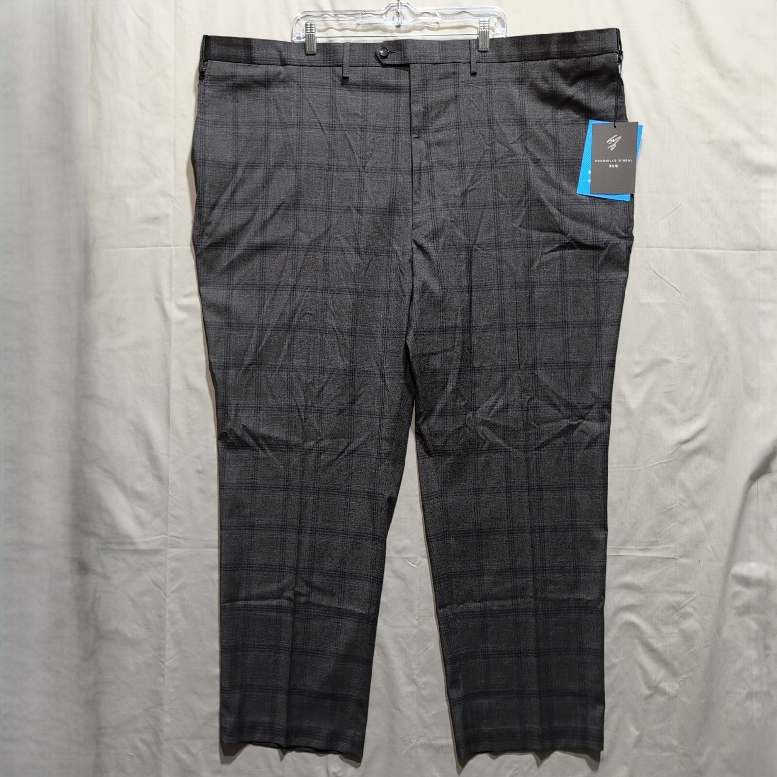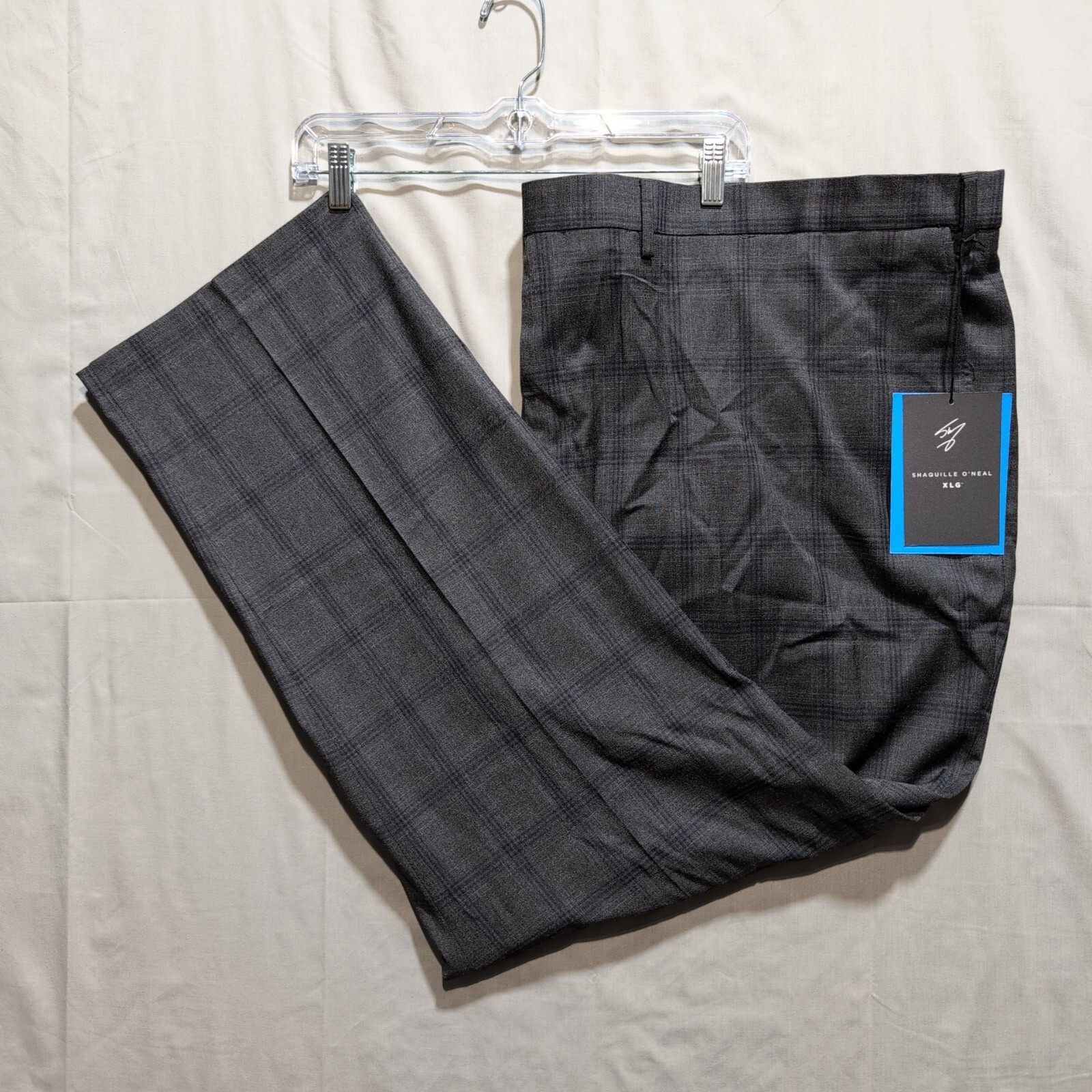 Shaquille O'Neal Big & Tall Stretch Flat Front Suit Pant Men's 54x32 Black Check