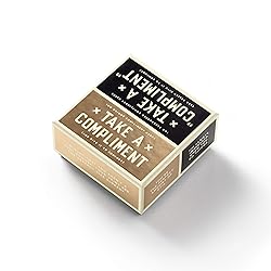 COMPLIMENT SET – The Take a Compliment Card Set from Brass Monkey includes 200 unique compliment cards to hand out...100 compliments and 100 backhanded compliments. INCLUDES 200 UNIQUE CARDS – This set includes 100 compliments and 100 backhanded compliments to give out to friends, family and even strangers if you dare. Give them out one at a time or display them on your coffee table. You're smart, you'll figure out something. PERSONALIZATION - Each card features a unique phrase on the front, with a place to write a personal note on the back (unless you want to stay anonymous). Example compliment: You are like a 20 dollar bill found in a winter coat. Example backhanded compliment: Your attractiveness more than makes up for your personality. Packed in a giftable box, this unique set is ready to be gifted to family and friends. Box measures 4.1" square (by 2" deep if you're curious). BRASS MONKEY – Created way back in 2020, Brass Monkey was founded on the idea that products can have personality, without becoming roadside souvenirs. So that’s where you’ll find them - making well-designed items that just happen to have a sense of humor.