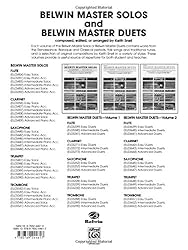 - Part of the Belwin Master Solos series and prepared under the direction of Keith Snell, each of these folios contains a collection of graded solos that should prove to be a useful source for both student and teacher. Each folio contains works from the Renaissance, Baroque, and Classical periods, folk songs and traditional tunes, and a section of original compositions. For the student, these solos will provide material with specific challenges in rhythm, range, and key signatures in music that is both instructive and enjoyable to perform. Each solo has been selected and arranged to challenge the student in different areas of technique and musicianship while providing exposure to a variety of musical styles that are enjoyable to perform. In addition, special attention has been given to creating accompaniments that are easy to play yet at the same time add interest to the solo parts. Available in easy, intermediate, and advanced levels as are the Belwin Master Duets. Contains: Abendlied (Schumann) * Gigue (Handel) * Habanera (Bizet) * Nocturne (Tyndall) * Three Minatures (Snell) * Two Royal Fanfares (Prelude To Te Deum"/La Rejouissance) (Charpentier)."