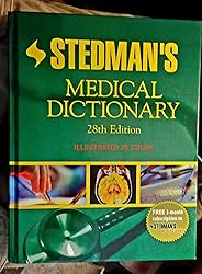 - Selected as a Doody's Core Title for 2021! A must-have medical reference resource! Stedman's Medical Dictionary, 28th Edition, is the most reliable resource available for healthcare professionals, including medical students, physicians, educators, researchers, and medical language specialists. More than 45 consultants from all the major medical and health science specialties have reviewed each word for accuracy and clarity, including new consultants for the specialties of endocrinology, gastroenterology, geriatrics, and rheumatology. Includes more than 107,000 terms and definitions.Approximately 1500 color illustrations, photographs, and tables expand and clarify the meanings of the dictionary terms and help the user develop a better understanding of the terms.Suffixes, prefixes, and combining forms - the ‘building blocks’ of medical language - are marked with an icon to aid in the user learning these terms.Terminologia Anatomica utilized for Gross Anatomy and Neuroanatomy as sanctioned by the Federative Committee on Anatomical Terminology.Easy-to-find subentries are included on their own line for easier readability.Useful cross-references highlighted in blue refer the user to a preferred synonym.Precision cut thumb tabs help readers easily search for terms Also included with purchase is a free 3-month subscription to Stedman's Online, which includes all the content from the print dictionary and more- Superior keyword search functionality making accuracy instantaneousAccess to more than 5,600 images illustrating key medical terms and conceptsCustomize the product using My Stedman's: add terms, add notes to terms, save searches and illustrations - all features to provide you with a personal experience that meets your needs42 illuminating live-action videos from Acland's Video Atlas of Human Anatomy present anatomy in motionClick-on audio icons displayed alongside approximately 60,000 terms let you hear correct pronunciations