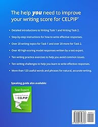 - Special summer price. Limited time only! Written by a test expert with more than 20 years of experience, this book gives you everything you need to raise your writing score for CELPIP®: • More than 40 high-scoring, easy-to-understand model responses • More than 40 writing topics (20 for Task 1, and another 20 for Task 2) • Practice exercises, challenges, and study tips to help you improve quickly • Detailed introductions and step-by-step guides to both writing tasks • Over 120 useful words and phrases for natural, accurate writing
