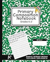 • Primary Composition Notebook: Back to School EssentialPrimary Composition Notebook grades k-2100 Sheets/200 PagesPages printed with solid and dotted line primary ruling for practicing writing the alphabetBinding: Professional grade binding (retail standard)Product Measures:7.5" x 9.25" (19.05 x 23.495 cm) Designed in USA