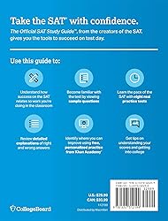 - Review every skill and question type needed for SAT success - now with eight total practice tests.The 2018 edition of The Official SAT Study Guide doubles the number of official SAT(R) practice tests to eight - all of them created by the test maker. As part of the College Board's commitment to transparency, all practice tests are available on the College Board's website, but The Official SAT Study Guide is the only place to find them in print along with over 250 pages of additional instruction, guidance, and test information.With updated guidance and practice problems that reflect the most recent information, this new edition takes the best-selling SAT guide and makes it even more relevant and useful. Be ready for the SAT with strategies and up-to-date information straight from the exam writers.The Official SAT Study Guide will help students get ready for the SAT with: - 8 official SAT practice tests, written in the exact same process and by the same team of authors as the actual exam - detailed descriptions of the math and evidenced based reading and writing sections - targeted practice questions for each SAT question type - guidance on the new optional essay, including practice essay questions with sample responses - seamless integration with Official SAT Practice on Khan Academy.Age range: Teen
