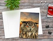 - Wise Owl Composition NotebookThe perfect way for bird & owl lovers to take notes in style. Unique design featuring a night owl with orange eyes against a dusky sunset desert landscape.120 pages / 60 sheetsSoft cover with premium matte finish7.44 x 9.69 inches (18.9 x 24.61 cm)Narrow Ruled lined paper 1/4 inch (6.4mm) This cool owl themed composition notebook is available with (6) interiors (copy and paste the number into the search bar): Wide Ruled Lines (8.7mm) - 1548375055 College Ruled Lines (7.1mm) - 1548375128 Narrow Ruled Lines (6.4mm) - 1548375179 Unruled Blank Sketch Paper - 1548375322 4x4 Quad Rule Graph Paper - 1548375233 Dotted Grid Paper - 154837539XThis Owl Journal is perfect for school, home, office, travel and moreHomeschooling assignmentsClassroom exercise booksCollege university study notesMeeting notes & To Do listsCreative writing journaling diariesBirthday party favors and giftsProject planners & DIY home organizersSecret Santa and gift exchange ideasStocking stuffers and gift baskets
