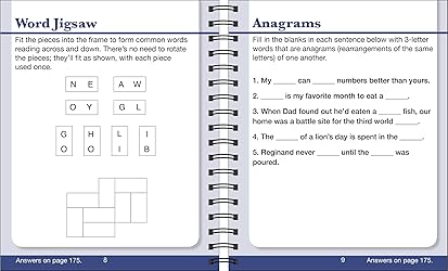 - Engage your brain and have fun with this collection of more than 150 simple puzzles! A variety of verbal, number, and logic puzzles are included that allow you to give your brain a gentle mental challenge on everyday skills.Puzzle types include: mini crosswords and word searches, 4-square sudoku, simple anagrams and scrambles, fill in the blank, guess the word, number sequences, and more.Large print makes it easy to read.Answer key at the back of the book.Spiral-bound, 192 pages. Puzzles let you have fun while maintaining cognitive function.