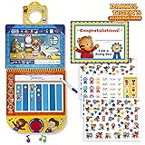 - This interactive reward chart with sounds, music, 150+ stickers, and wipe-off marker with your favorite Daniel Tiger characters makes potty training fun! Daniel and his friends encourage toddlers with positive reinforcement - they think that trying is GRRRRific! Use the marker to write your child’s name on the weekly chart, to personalize it. Use repositionable stickers to reward positive outcomes and every nice try. The slide-out hanger lets you hang the chart anywhere, including a doorknob! An electronic button features Daniel’s potty-time song and sounds. Ready for big-kid underwear? Personalize the certificate of congratulations! Using this potty reward chart will help get your little one excited about using the potty and help them track their progress as they transition from diapers to underpants.With space to chart 4 weeks of training progress, you can create a reward system using the stickers to help motivate boys and girls by encouraging them to keep trying.Use the pull-out hanger to display the potty chart where your child can see it - it's big enough for a doorknob!Fun activities and exercises throughout will keep your child engaged and focused on accomplishing their goal of using the potty! Activities include seek and find, a maze, sticker decoration, and learning the ABCs of potty training!Encourage your toddler with positive reinforcement and incentives with 150+ stickers of their favorite Daniel Tiger characters and a removable perforated certificate they can display when they've learned how to use the potty!