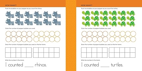 • Kindergarteners (ages 4 to 6) will strengthen math literacy with this write-and-wipe activity book that includes a silicone 10-frame popper to sharpen number sense, counting, and more! Whether they’re in kindergarten already, preparing for it, or just want a refresher, students ages 4 to 6 need a basic understanding of the concepts they’ll be taught in kindergarten math. Ready to Learn: Kindergarten Math Write & Wipe Workbook with Popper helps kindergarteners learn counting with the removable included silicone 10-frame popper. Ten frames help young children develop number sense by providing them with a visual of numbers. By simply pressing each bubble, children can continue adding bubbles until they reach 10. With practice, children will recognize the visual representation of the number without counting. They can then practice subtraction by releasing each bubble. The hands-on 10-frame strengthens kindergarteners’ understanding of numbers and allows them to master number recognition quickly. Through illustrated, easy-to-understand write-and-wipe exercises, children will learn number sense and simple addition and subtraction. This colorful, engaging workbook also includes a wipe-off marker so kids can practice the exercises over and over again.   Get to know the Ready to Learn series! Developed for kids entering pre-kindergarten all the way through third grade, Silver Dolphin’s Ready to Learn series of educational and engaging workbooks, workpads, write & wipe formats, and flash cards will put young learners on the path to success. This series helps to prevent learning loss by providing continuous practice and reinforcement of essential skills. Focusing on three key subjects—reading, writing, and math—each grade level is vetted by experts in early education to adhere to the Common Core State Standards Initiative. Foundational, buildable skills are introduced, developed, and reinforced with colorful illustrations and familiar learning formats that will encourage learning confidence as kids benefit from extra educational opportunities outside the classroom.