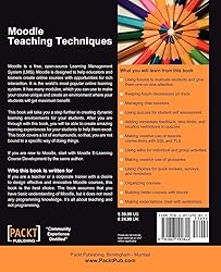 - This book for university teachers, professional educators, and corporate trainers is about applying teaching techniques through Moodle, the world's most popular online Learning Management System, covering creative uses of Moodle's standard features, workarounds for alternative solutions, when and how to apply different learning solutions that are based on proven, accepted instructional principles and traditional classroom activities: Distributed Practice, Self Monitoring, Pre-correction, and more. The free, open-source Moodle LMS is designed to facilitate creating richly interactive online courses; with many screenshots this book shows how Moodle's many modules can be used to make courses unique, creating environments that motivate team work, where students get maximum benefit. The book assumes that readers have basic understanding of Moodle, but it does not need any programming knowledge; it is all about teaching and not programming and even experienced trainers will benefit from it.