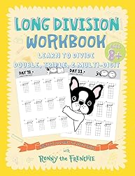- Learn more about long division with Ronny the Frenchie, your favorite math friend! He’s back with more amazing and astounding facts to share with you. Progress your learning of division and have fun at the same time!Learn how to do long division with single and multi-digit divisors.Enjoy progression through multiple workbook pages with lighthearted commentary and facts from Ronny the Frenchie.Facts are presented at intervals throughout the book as small rewards for completing sections.Page-a-day format makes learning an easy daily activity that reinforces repetition and keeps children coming back for more.This book builds on your children’s learning of division, and by the end of it they will be dividing numbers in their sleep! The facts are all from verified sources and cover math topics from how we used math in ancient days to fun, modern math facts for kids to share with friends at school. What is the smallest number divisible by 1, 2, 3, 4, 5, 6, 7, 8, 9, and 10? Ronny the Frenchie will let you know how he discovered this fact, but you’ll have to complete some pages in the workbook before you’ll find out!