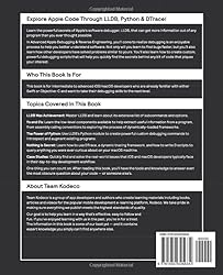 • Explore Apple Code Through LLDB, Python & DTrace!Learn the powerful secrets of Apple's software debugger, LLDB, that can get more information out of any program than you ever thought possible.In Advanced Apple Debugging & Reverse Engineering, you'll come to realize debugging is an enjoyable process to help you better understand software. Not only will you learn to find bugs faster, but you’ll also learn how other developers have solved problems similar to yours. You'll also learn how to create custom, powerful debugging scripts that will help you quickly find the secrets behind any bit of code that piques your interest.Who This Book Is ForThis book is for intermediate to advanced iOS/macOS developers who are already familiar with either Swift or Objective-C and want to take their debugging skills to the next level.Topics Covered in Advanced Apple Debugging & Reverse EngineeringLLDB Max Achievement: Master LLDB and learn about its extensive list of subcommands and options.1's and 0's: Learn the low-level components available to help extract useful information from a program, from assembly calling conventions to exploring the process of dynamically-loaded frameworks.The Power of Python: Use LLDB’s Python module to create powerful custom debugging commands to introspect and augment existing programs.Nothing is Secret: Learn how to use DTrace, a dynamic tracing framework, and how to write D scripts to query anything you were ever curious about on your macOS machine.Case Studies: Quickly find and solve the real-world issues that iOS and macOS developers typically face in their day-to-day development workflow.One thing you can count on: After reading this book, you'll have the tools and knowledge to answer even the most obscure question about your code — or someone else’s.