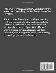 • The original purpose of this study was to help single parents, but the guides found here can be helpful to anyone wanting to create some order in the chaos so many of us find ourselves in. Whether that chaos comes in the form of temporary stresses or it is something that has become a familiar way of life . . . We will . . . •First, look at the fact that you are not alone in this journey (this will come in the form of realizing how real God wants to be in your life). •The next step will be to guide you in setting forth safe boundaries for you and your family. These boundaries will be the perimeters of your "desired haven." We will cover seven specific areas. These include spiritual disciplines, time management, health, housekeeping, relationships, parenting, and finances. •Lastly, we will discover what it means to rest in the journey He has given us.