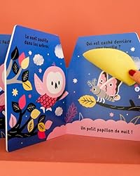- Découvrez le livre d'éveil "Cache-cache petite chouette" : 5 grands flaps en feutrine pour stimuler la motricité fine de bébé dès 6 mois. Un jeu de coucou/caché adorable pour les tout-petits ! Résumé : Il fait nuit. Dans les arbres, petite chouette croise d'autres petits animaux nocturnes, une chauve-souris, un papillon de nuit, un hibou, cachés au creux d'un arbre, derrière une feuille... Sa maman l'appelle et petite chouette se blottit sous son aile. "Cache-cache petite chouette" est le livre parfait pour éveiller la curiosité de votre bébé. Ce livre cartonné robuste comporte 5 grands flaps en feutrine découpés, parfaits pour développer la motricité . Une petite histoire sur le principe du coucou/caché grâce à des flaps en feutrine. Un mini format très solide, parfaitement adapté aux petites mains de bébé.