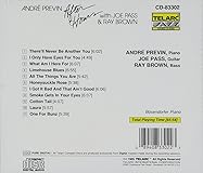 • Reissue of a 1989 recording by pianist Andre Previn, which marked his return to recording jazz after a break of 27 years. On this collection of tunes drawn from the American popular songbook he is supported by Joe Pass on guitar and Ray Brown on bass. Personnel: Andre Previn (piano), Joe Pass (guitar), Ray Brown (bass)