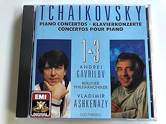 - Tchaikovsky - Piano Concertos, Klavierkonzerte, Concertos Pour Piano 1 & 3 / Andrei Gavrilov, Berliner Philharmoniker, Vladimir Ashkenazy / EMI Audio CD 1989 Stereo / CDC 7 49632 2 UPC 077774963220 /// Label: EMI – CDC 7 49632 2 Format: CD, Album Released: 1989 Genre: Classical Style: Romantic /// Tracklist: Piano Concerto No. 1 In B Flat Minor, Op. 23 1 I. Allegro Non Troppo E Molto Maestoso 19:20 2 II. Andantino Semplice 6:52 3 III. Allegro Con Fuoco 6:16 4 Piano Concerto No. 3 In E Flat Major, Op. 75 14:25 Composed By – Pyotr Ilyich Tchaikovsky Conductor – Vladimir Ashkenazy Orchestra – Berliner Philharmoniker Piano – Andrei Gavrilov