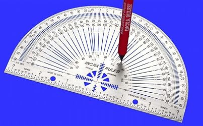 Protractor lets you plot any angle with ease and absolute accuracy T-Bar and see-through crosshairs provide perfect alignment 6-inch centering scale with micro-fine marking holes at every 1/32 inches Four angle scales, including one for marking narrow stock Micro-fine guide holes at every 45-, 30-, 22.5-, 5-, 1-, and 0.5-degree intervals