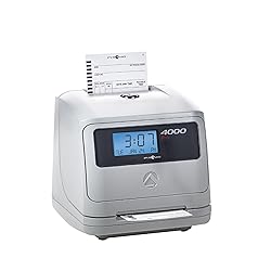 On-Time Tracker: Auto totaling time card punching machine records employee IN/OUT punches with automatic top card feed and return. Calculates time between punches, accumulates worked hours per pay period, and supports up to 50 employees. Simple Set Up: Ready-to-use time clock punch machine with easy setup. Back-lit LCD displays time, date, and day, supports 0, 5, 10, and 15-minute rounding rules, automatic time card punching, and a tamper-proof security lock. Time Clock Bundle: 4000 Auto Totaling Time Clock Bundle includes an time clock, 25 time cards, ribbon, two security keys, and user guide. Prints date, auto-aligns cards, and resets for short months, leap years, and daylight saving time. Track and Record: Employee time clock system tracks clock in/out, breaks, lunches, and weekly totals for accurate payroll. Supports 12-hour (AM/PM) or 24-hour military time and calculates actual or rounded hours automatically. Workplace Solutions: 4000 auto-aligning time clock mounts on wall or table. Sends internal signals to optional bells, horns, or wall clocks. UL and CUL approved employee time clock with 1-year warranty for small business use.