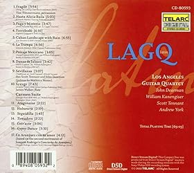 • Lagq: Latin (View amazon detail page) ASIN: B00006J9SZ Binding: Audio CD Artist: Los Angeles Guitar Quartet UPC: 089408059322