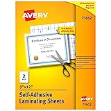 - Easily protect and preserve important documents, cherished photos, reusable schedules, and more with Avery 73602 Self-Adhesive Laminating Sheets. Each 9" x 12" glossy clear laminate paper features a permanent self-adhesive backing, allowing you to achieve professional-quality laminations without a machine. Laminating is simple! Use the included grid to size your document, place it on the adhesive side of a sheet, and then seal it with a second sheet, adhesive side down. Finally, trim the excess edges for a clean, polished finish, and you’re ready to go. Made from acid-free, archival-safe material, these lamination sheets provide long-term protection for diplomas, artwork, collector cards, contact lists, decorations, and homemade crafts, helping to prevent damage, fading, and wear. For added versatility, clear laminated sheets double as dry erase surfaces. Simply write directly on the laminating sheet with a dry erase marker and wipe clean for reusable lists, notes, kid’s learning aids, practice sheets, and more. Whether you're a business professional, teacher, student, hobbyist, or collector, Avery self-laminating sheets offer a quick, reliable solution for protecting and preserving important papers without the hassle of traditional lamination. This item includes a total of two self-laminating sheets, perfect for home, school, office, or crafting needs.