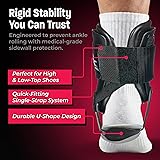 MAXIMUM STABILITY DURING PLAY: Rigid U-shaped shell minimizes side-to-side movement for trusted ankle protection; ideal for preventing sprains and supporting recovery during high-impact sports like volleyball and cheerleading LIGHTWEIGHT COMFORTABLE FIT: Small size fits men's shoe size 5-7, women's shoe size 6-8; feather-light EVA padding molds to the ankle for extended wear without discomfort, while low-profile design slips easily into most athletic shoes. For those with narrow feet, consider going down a size. For those with very wide feet, consider going up a size. EASY TO WEAR & ADJUST: Features a single strap system that is adjustable for both low-top or high-top shoes; anatomical bilateral hinge allows natural range of motion so you stay mobile and supported BUILT FOR ACTIVE LIFESTYLES: Perfect for athletes needing ankle support for sports like basketball, softball, football, and more; latex-free and versatile enough for injury prevention or post-sprain stabilization LEFT OR RIGHT FOOT COMPATIBLE: Designed for universal fit so you can use it on either ankle as needed; durable polypropylene shell stands up to intense activity and helps reduce the need for multiple braces