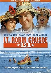 - Escape to an island full of castaway comedy as Disney favorite Dick Van Dyke and Nancy Kwan star in this hilarious South Pacific adventure. Lt. Robin Crusoe (Van Dyke) is an all-thumbs Navy pilot who ditches his plane after engine trouble. He survives a riotous raft ride only to find himself marooned on a lush tropical island with a poker-playing chimp, a gadget-rich abandoned sub, and Wednesday (Kwan) -- a wild but beautiful native girl in exile for disobeying her overprotective father. You won't stop laughing as all the natives get restless in this paradise of clowning and chaos -- on DVD for the first time!|This is the only movie for which Walt Disney received a story credit (as Retlaw Yensid -- Walter Disney spelled backward).