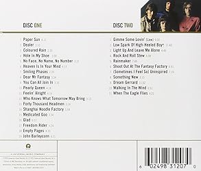 - Traffic – Gold / Universal 2x Audio CD 2005 / 0602498312070 UPC 602498312070 // Label: Universal – 0602498312070 Series: Gold Format: 2 × CD, Compilation, Remastered Country: Europe Released: 2005 Genre: Jazz, Rock, Funk / Soul Style: Soul-Jazz, Rhythm & Blues, Pop Rock, Soul, Psychedelic /// Tracklist: CD 1 1. Paper Sun 2. Dealer 3. Coloured Rain 4. Hole in My Shoe 5. No Face, No Name, No Number 6. Heaven Is in Your Mind 7. Smiling Phases 8. Dear Mr. Fantasy 9. You Can All Join in 10. Pearly Queen 11. Feelin' Alright? 12. Who Knows What Tomorrow May Bring 13. (Roamin' Thro' the Gloamin' with) 40.000 Headman 14. Shanghai Noodle Factory 15. Medicated Goo 16. Glad 17. Freedom Rider 18. Empty Pages 19. John Barleycorn (Must Die) CD 2 1. Gimme Some Lovin' 2. The Low Spark of High-Heeled Boys 3. Light Up or Leave Me Alone 4. Rock and Roll Stew Parts 1 & 2 5. Rainmaker 6. Shoot Out at the Fantasy Factory 7. (Sometimes I Feel So) Uninspired 8. Something New 9. Dream Gerrard 10. Walking in the Wind 11. When the Eagle Flies 1-1 Paper Sun 4:12 1-2 Dealer 3:10 1-3 Coloured Rain 2:39 1-4 Hole In My Shoe 3:00 1-5 No Face, No Name, No Number 3:31 1-6 Heaven Is Your Mind 4:15 1-7 Smiling Phases 2:39 1-8 Dear Mr. Fantasy 5:34 1-9 You Can All Join In 3:35 1-10 Pearly Queen 4:18 1-11 Feelin Alright 4:20 1-12 Who Knows What Tommorow May Bring 3:15 1-13 Forty Thousand Headmen 3:14 1-14 Shanghai Noodle Factory 5:04 1-15 Medicated Goo 3:34 1-16 Glad 6:57 1-17 Freedom Rider 5:24 1-18 Empty Pages 4:33 1-19 John Barleycorn 6:21 2-1 Gimme Some Lovin (Live) Written-By – Winwood, Davis 9:00 2-2 Low Spark Of High Heeled Boys 11:40 2-3 Light Up Or Leave Me Alone 4:46 2-4 Rock And Roll Stew Written-By – Gordon, Grech 6:08 2-5 Rainmaker 7:49 2-6 Shoot Out At The Fantasy Factory 6:01 2-7 (Sometimes I Feel So) Uninspired 7:19 2-8 Something New 3:15 2-9 Dream Gerrard Written-By – Stanshall 11:02 2-10 Walking In The Wind 6:51 2-11 When The Eagle Flies 4:21 Arranged By – Winwood (tracks: 1-19) Artwork – Vartan (4) Bass Guitar – Hood (tracks: 2-6, 2-7), Gee (tracks: 2-8 to 2-11) Bass Guitar, Violin – Grech (tracks: 2-1 to 2-5) Compilation Producer – Bill Levenson Congas, Timbales, Bongos, Percussion – Kwaku Baah (tracks: 2-1 to 2-11) Design – Coco Shinomiya Drums – Gordon (tracks: 2-1 to 2-5), Hawkins (tracks: 2-6, 2-7) Drums, Percussion, Vocals, Tambourine – Capaldi Engineer – Humphries (tracks: 2-1), Kramer (tracks: 1-1 to 1-8) Flute, Saxophone, Percussion, Vocals, Organ, Electric Piano – Wood Guitar, Mellotron, Sitar, Tambura, Performer [Shakkai], Bass Guitar, Vocals, Harmonica, Acoustic Guitar – Mason Liner Notes [Essay] – Scott Schinder Organ, Guitar, Bass Guitar, Piano, Harpsichord, Percussion, Vocals, Electric Piano, Mellotron – Winwood Photography By [Photo Coordination] – Ryan Null Producer – Blackwell (tracks: 1-16 to 1-19, 2-8 to 2-11), Wood (tracks: 2-8 to 2-11), Capaldi (tracks: 2-8 to 2-11), Miller (tracks: 1-1 to 1-15), Kwaku Baah (tracks: 2-8 to 2-11), Gee (tracks: 2-8 to 2-11), Winwood (tracks: 1-16 to 1-19, 2-2 to 2-7), Winwood (tracks: 2-8 to 2-11) Remastered By – Ellen Fitton Written-By – Wood (tracks: 1-3, 1-6 to 1-8, 1-12, 1-14), Mason (tracks: 1-4, 1-9, 1-11), Capaldi (tracks: 1-1 to 1-3, 1-5 to !-8, 1-10, 1-12 to 1-14, 1-17, 1-18, 2-2, 2-3, 2-5 to 2-8, 2-10, 2-11), Miller (tracks: 1-15), Fallon (tracks: 1-14), Winwood (tracks: 1-1 to 1-3, 1-5 to 1-8, 1-10, 1-12 to 1-18, 2-1, 2-2, 2-5 to 2-11), Trad (tracks: 1-19)