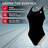 80% Recycled Nylon, 20% LYCRA XTRA LIFE fiber Made in the USA and Imported CONSCIOUS DURABILITY: Constructed with our one-of-a-kind TYReco textile, made from recycled fabric; this competitive swim suit for women requires less energy to produce while still delivering freedom of motion in a sleek, performance-driven profile PERFORMANCE DESIGN: Tested to give you the edge in all your activities; this premium one-piece swimsuit for women is designed for racing, training, or recreational swimming; perfect for swimmers who want high-performance in a swimsuit that lasts BUILT TO MOVE: This women's athletic bathing suit boasts a full range of motion thanks to thick supportive straps, a medium neckline, keyhole back, and a moderate cut that maintains a comfortable hold on your body for reliable full coverage LONG LASTING: A durable blend of 80% recycled nylon/ 20% LYCRA XTRA LIFE fiber resists damage from chlorine and provides UPF 50+ sun protection; this women's swimsuit ideal for both indoor and outdoor environments SINCE 1985: Since its inception, TYR has become one of the world’s most recognizable swimming and fitness brands; TYR, Always in Front