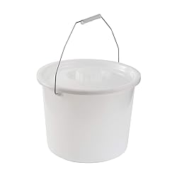PORTABLE TOILET REPLACEMENT COMMODE BUCKET is both durable and sturdy UNIVERSAL COMMODE BUCKET holds up to 12 quarts of fluid. The translucent design makes it easy to view and decide when it has to be emptied BEDSIDE COMMODE RELACEMENT PAIL includes lid and handle for easy transport EXTRA COMMODE BUCKET can be used as a replacement for both standard and bariatric commodes MULTIUSE BUCKET with lid and handle can be used for household storage, as a wash basin or for outdoor work. Holds up to 12 quarts of fluid; Inner diameter of top of bucket is 11.5 inches, bottom diameter 9.25 inches, and handle diamter is 2 5/8 inches.