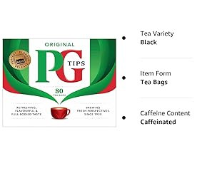 PG Tips 80 Non-Pyramid Teabags – Black tea in traditional flat tea bag format Simple Preparation – Add freshly boiled water and brew to preferred strength Suitable for Home & Workplace Use – Multi-count box for frequent tea drinkers From the PG Tips Tea Range – Recognised British tea brand