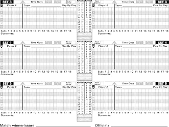 Scores 23 matches, 5 games per match Can be used for Side Out or Rally scoring Abbreviation Key at the top of each page for easy reference Heavy back cover provides rigid writing surface