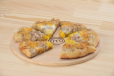 Officially licensed MasterChef Junior Pizza Cooking Set Kids pizza making kit comes with a sauce ladle, wood pizza board, personal pizza pan, and a plastic pizza cutter Set also features 3 unique pizza recipe cards for all levels of experience, plus 1 blank recipe card to write your own recipe! Includes real cooking tools with kid-safe, non-slip silicone grips / Ages 6 and up / Food not included Makes a great gift for little chefs in training! / Collect all 5 sets and become the ultimate MasterChef Junior!