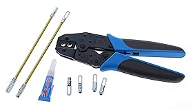 Replacement Kit: For use on S-Class and Zoom Fish Tapes Ease of Use: Crimps on new eyelet or leader in minutes Design: the fiberglass construction provides strength for optimum pushing and pulling capability. The field application kit is equipped with durable materials that crimps onto a new eyelet or leader within minutes Versatility: Dies can be used with Crimpmaster Crimp tool. Product Specifications: the fiberglass fish tape field application kit contains Crimpmaster Crimp Tool frame, die set, S-Class eyelets (2), S-Class leaders (2), Zoom eyelets (2) & instant adhesive for S-Class fish tape