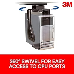 - With the 3M Adjustable Under-desk CPU Holder, placing your CPU in a convenient, accessible place has never been easier. The 360 degree swivel ensures easy access cables and ports on the back of CPU. It mounts to the underside of your work surface on 17" glide track to keep it conveniently accessible. It is width adjustable from 3.5" to 9.3" and height adjustable from 13.5" to 22.5" to fit most CPU's. Sturdy steel construction holds 50 lbs. Black..