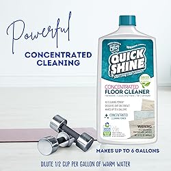 - Quick Shine Multi-Surface Concentrated Floor Cleaner is pro level cleaning for the toughest messes. The concentrated formula goes a long way to treat heavy duty cleaning when you need a little extra boost for ground-in dirt. Quick Shine Multi-Surface Concentrated Floor Cleaner, 27oz, is dirt dissolving and provides powerful cleaning for hardwood, Luxury Vinyl Plank, LVT, laminate, tile, and stone. Each 27 oz. bottle makes up to 27 gallons of powerful acting floor cleaner.