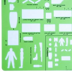 Template used at crime scenes. Useful for drawing burglary reports as well as more serious crime scenes. This notebook-sized template has holes to fit a three ring binder. Green Plastic. Stores Easily. Size is 8 1/2" x 11" The template includes furniture and plumbing cutouts.