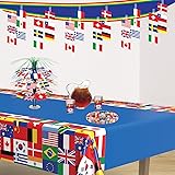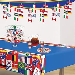 Vibrant International Flag Design: Features a collection of colorful flags representing countries from around the world displayed against a bright blue background with red yellow and green framing creating a bold statement for any event Generous 12-Foot Length: Measures 12 inches tall by 12 feet long providing a striking and expansive decoration perfect for large event spaces classrooms or global-themed parties Easy to Install: Has white rods with blue cord for hanging. Lightweight and simple to hang using tape hooks or tacks allowing for quick setup and effortless removal making decorating for your event stress-free Versatile Global Decor: Ideal for international festivals cultural celebrations Olympic parties geography lessons classroom decorations and travel-themed events bringing an authentic worldwide touch to any occasion Join the Celebration: Elevate every occasion and milestone with our premium party supplies Our vibrant decorations and favors promise durability and style ensuring unforgettable moments for all life events