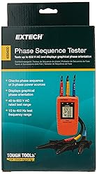 - The 480400 Phase Sequence Tester has a 40 to 600-Volt rated range for testing phase orientation of 3-phase power sources over a 15 to 400Hz frequency range. Multiline graphical LCD indicates phase orientation (clockwise or counter-clockwise) and whether each of the phases is live. No battery required. Comes complete with cable, three large color coded alligator clips, and pouch case.