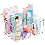 - Keep accessories and supplies at your fingertips with this crystal-clear organizer. Sturdy and stable design. Five compartments hold a multitude of items in any room of the house. Compartments are deep so items stand upright and won't fall over. Perfect for placement in a deep bathroom drawer. Products stay upright and easily accessible so you won't have to fumble through cluttered drawers to find your products. Made in USA.