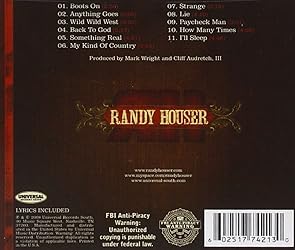 - One listen to Randy's soulful singing is enough to convince you that you are listening to a star. His deeply felt lyrics are proof, that Randy Houser has not only lived the life of a true "Paycheck Man", but is major songwriting talent. His open-hearted, charismatic personality shines through in his debut album. Whether getting his "Boots On" to party Country style or plunging into sadness, Randy Houser has what all great country artists have- believability. Thanks to his riveting vocal prowess, Randy is receiving great responses from both fans and radio programmers with his first single, the strikingly emotional ballad "Anything Goes". As illustrated in his breakthrough single, Randy Houser is a breathtaking vocalist with fire and conviction at his core. Both the songs he has written and the songs he has chosen from other talented Nashville writers for this album are superb showcases for the vocal side of his talent. In addition to "Anything Goes," they include the sensual "Strange" and the ultra-cool, groove-saturated "How Many Times," the latter featuring harmony vocals by superstar Vince Gill.