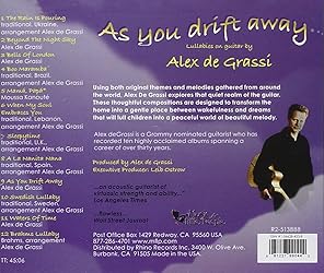 • Acoustic guitarist Alex DeGrassi was among the original artists on the roster of the influential Windham Hill label in the 1980s, and his instrumental blend of folk, jazz, classical, and world music elements has weathered the changes of the contemporary music scene. DRIFT AWAY is a collection of both classic and original lullaby songs, ideal for late-night unwinding or early-moring chilling-out in addition to lulling young children to dreamland. A fine, discerning addition to an already extensive body of work, AS YOU DRIFT AWAY is one of those rare recordings that transcends age and genre. Mark Keresman, allmusic.com