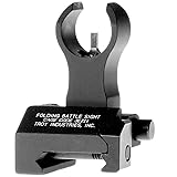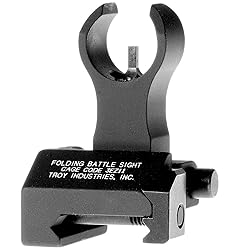 - Durability and dead-on accuracy have made Troy Industries Folding BattleSights the hands-down choice of Special Ops and tactical users worldwide. Easy to install and to deploy, with no levers or springs to fumble with, these sights position apertures at exact factory height. A stainless-steel cross-locking system ensures sights remain upright and zeroed under extreme combat conditions. A push of a button folds the sights securely out of the way until you need them again (they fold to a profile of just 0.460). Troy BattleSights feature a zero-canting attachment system for use on all military and aftermarket receivers. No tools required for adjustment. Each click adjusts .50 MOA. - Folding - Black Note: Will not work on railed front gas block mounted lower than receiver height.