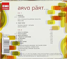 - Part: Stabat Mater, I Sümfoonia, Missa Syllabica, 7 Magnificat Antiphons. Featuring Kaia Urb, Tiit Kogerman, Ene Salumae Paavo Järvi, Andrew Parrott, and Tönu Kaljuste.