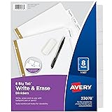 Avery 8-Tab Binder Dividers, Write & Erase White Big Tabs, 1 Set (23078)