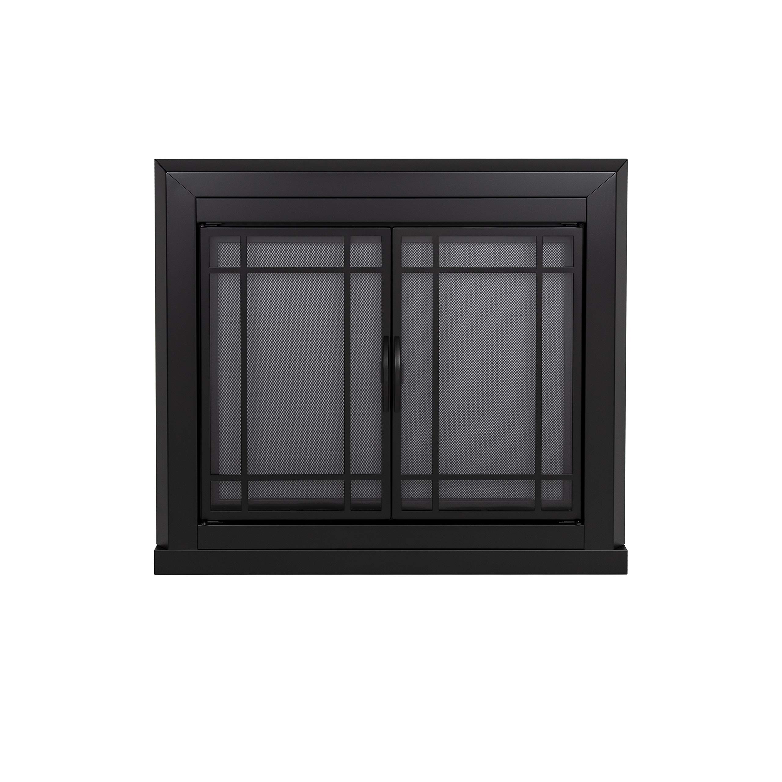Large size dimensions: 36-43-Inch width of firebox opening and 25.5-32.5-Inch height of firebox opening, with 43.5-33-Inch overall frame dimensions Midnight Black Finish with Smoked Glass Premium/Fine Mesh Panel Prairie style 9 pane cabinet style doors 5 in. "easy grip" handles