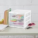 - We've all got heaps of random stuff that we need to organize in our home. Organize your heap with the Sterilite ClearView Plastic Stacking 3-Drawer Storage Organizer System, (4-Pack). This storage unit is an ideal solution for organizing a variety of items around your house. The comfortable handle allows the drawer to be pulled out easily, and drawer stops prevent the drawer from sliding out of the frame. Multiple drawers stack on top of each other, creating a modular and customized storage solution in your home office. Featuring a sleek white frame and see-through drawers you can easily find what you are looking for without opening every drawer. Conveniently store your standard ream 8.5 x 11-inch paper along with other crafting supplies like pens, markers, beads, paint, and more. This small storage unit is ideal for offices, bedrooms, bathrooms, and dorms. Maximize your storage space with the Sterilite ClearView Plastic Stacking 3-Drawer Storage Organizer System, (4-Pack).