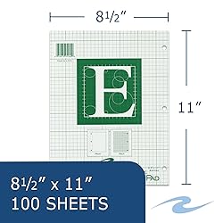 Engineering Pads measure 8.5" x 11", 100 / 200 pages sheets of 15# green bond paper Paper is plain, except for printed outline box on top of sheet, and has 5 square/inch grid layout printed on back of sheet Back grid shows through to front as dimensional guide for drawings and layouts Pads are glued along the top edge and 3-hole punched to fit in standard 3-ring binder Proudly made in USA! Roaring Spring has been producing paper products for more than 130 years